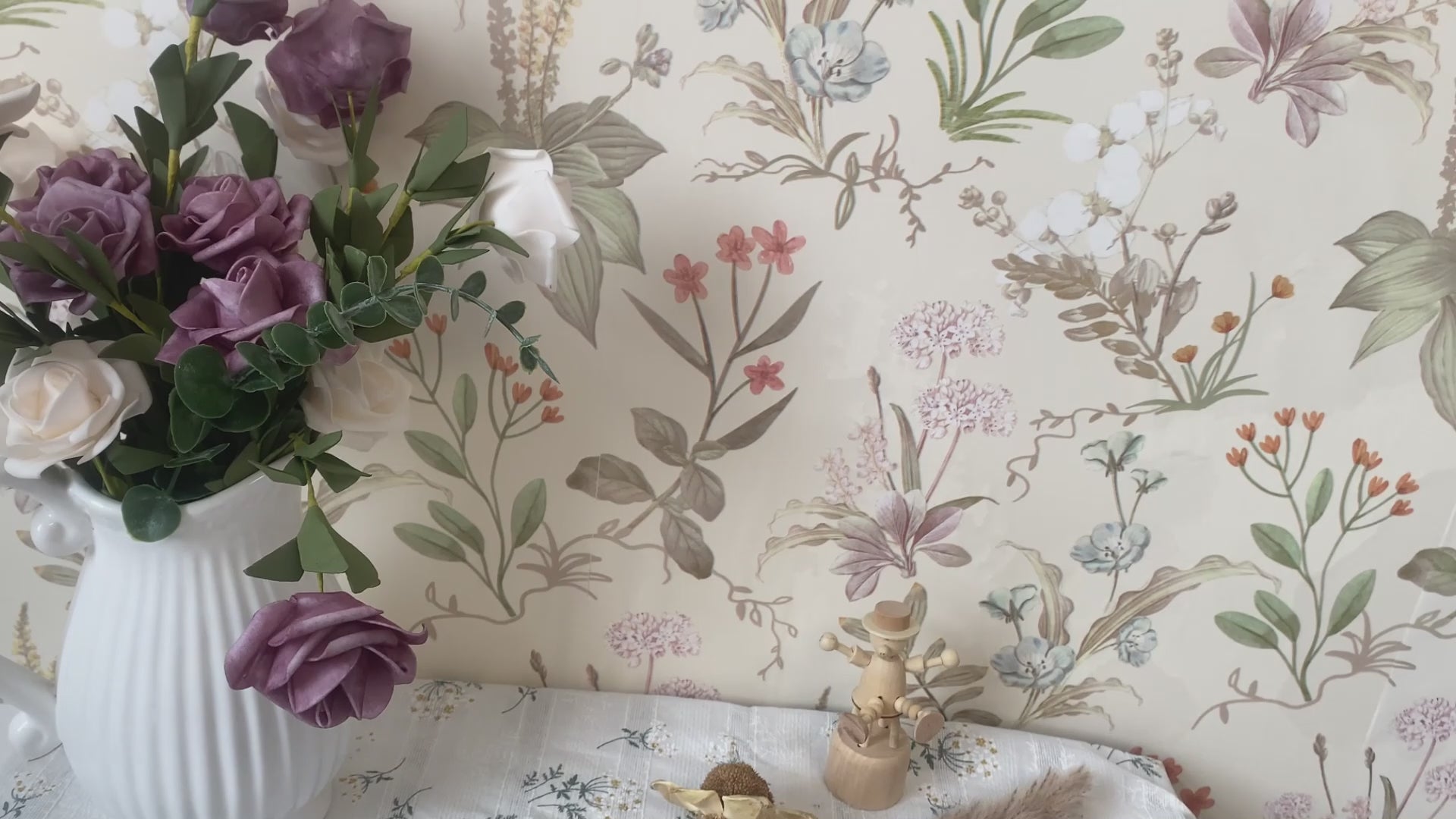 Featuring a beautiful background with wildflowers pattern , this floral wallpaper is perfect for adding a touch of nature-inspired style to any room. It can be used to create an accent wall, cover furniture, or decorate shelves.